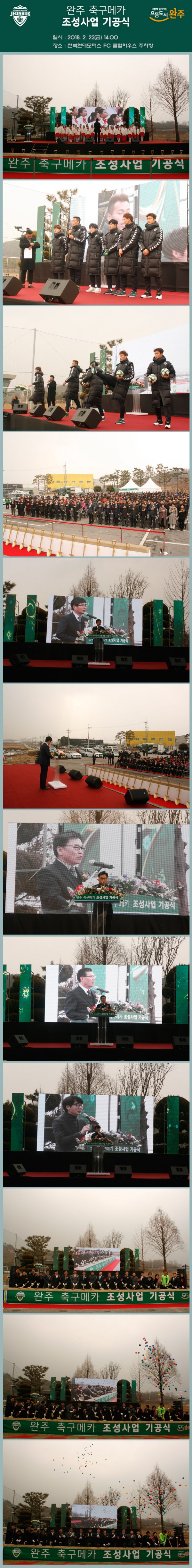 이외에도 문정훈 현대자동차 전주공장장, 최강희 전북현대모터스FC 감독, 김대은 전라북도축구협회장, 이동국, 신형민 전북현대모터스 선수, 기관단체장 주민 등 300여명이 참석해 조성사업 기공을 축하했다.완주 축구메카 조성사업은 봉동읍 율소리에 위치한 전북현대모터스FC 클럽하우스 인근에 9만6498㎡ 부지에 축구장 5면, 유소년 축구장 1면, 유소년 클럽하우스 등 축구시설을 조성하는 사업이다.