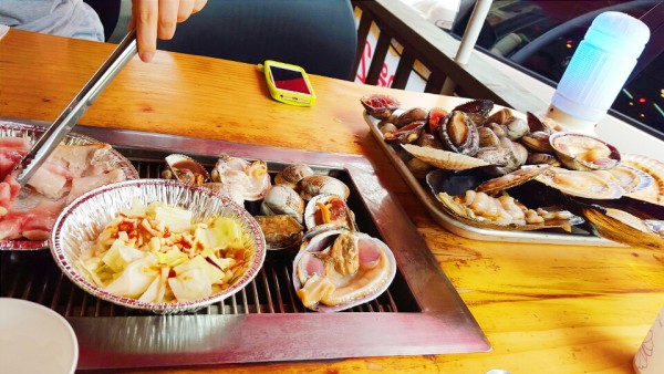 해수욕장앞엔 조개구이 무한리필집이 많습니다.