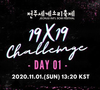 2020 전주세계소리축제는 오는 1일부터 19일까지 19일간, 전주역 광장에 마련된 특설 무대에서 <19X19 챌린지>를 진행한다.