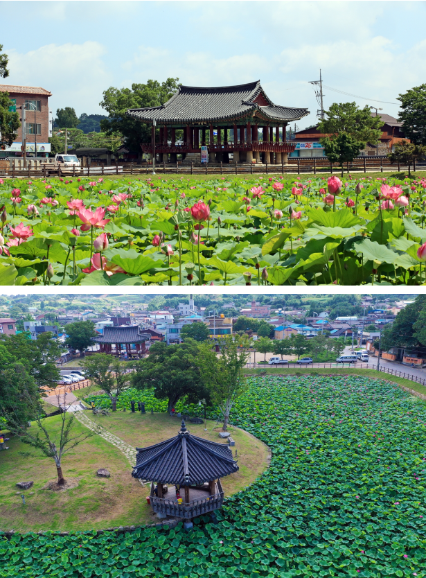 연못의 규모가 크지는 않지만 아름다운 한옥 정자와 자연경관이 어우러진 피향정 연꽃 자태는 전국 최고다.