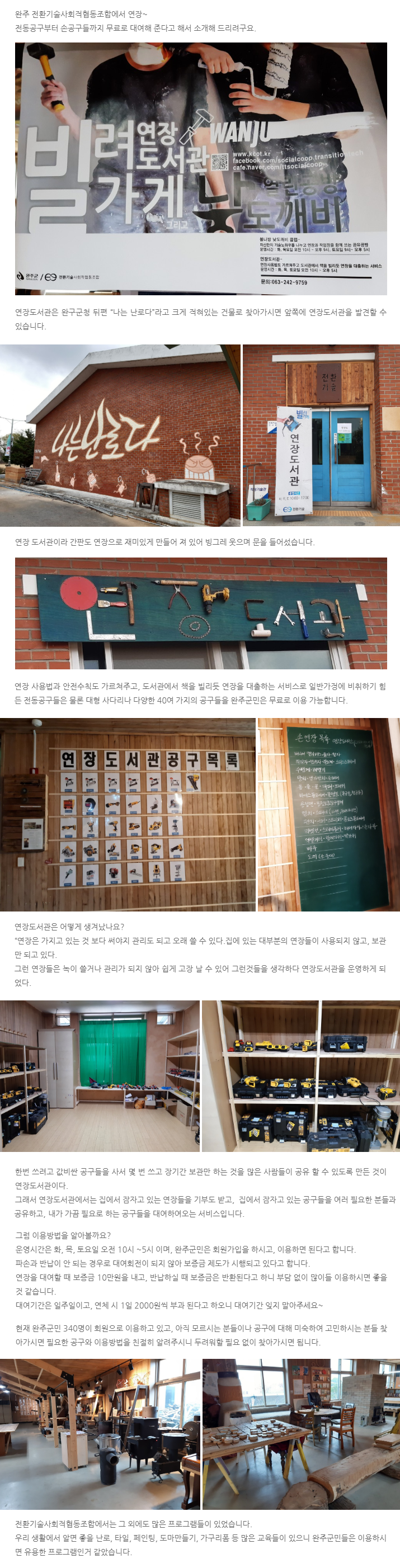 완주 : 연장도서관! 연장을 무료로 빌려드립니다.