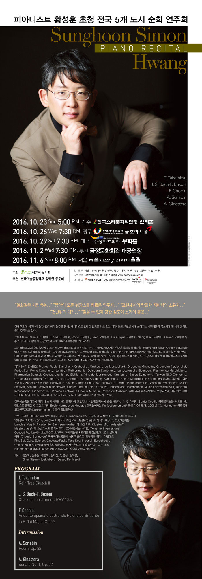 피아니스트 황성훈 초청 전국 5개도시 순회연주회