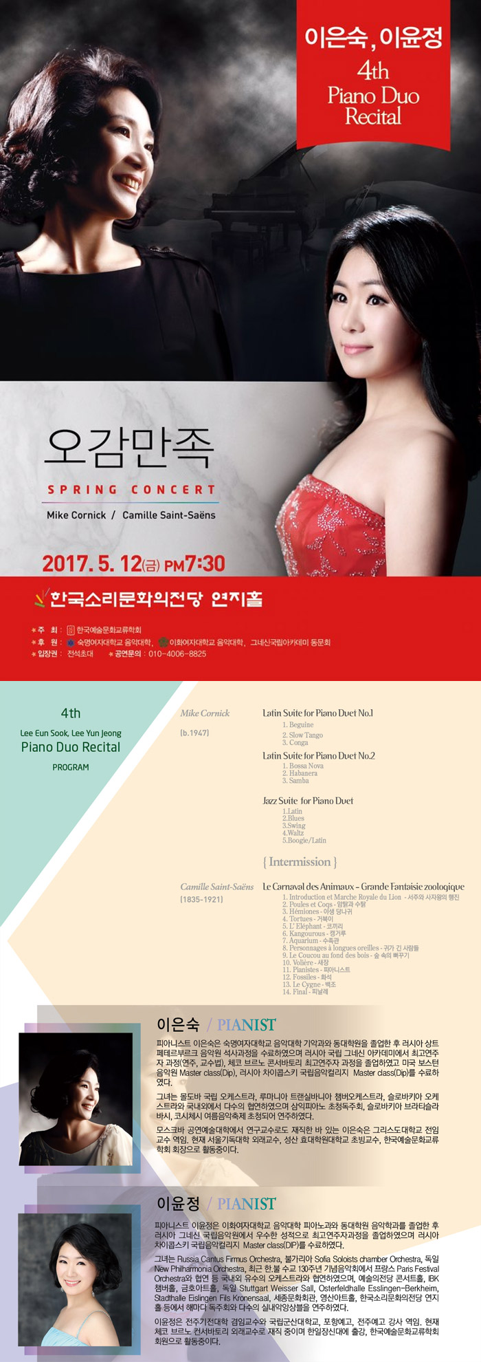 이은숙 이윤정 4th 피아노 듀오 리사이틀 오감만족 Spring Concert