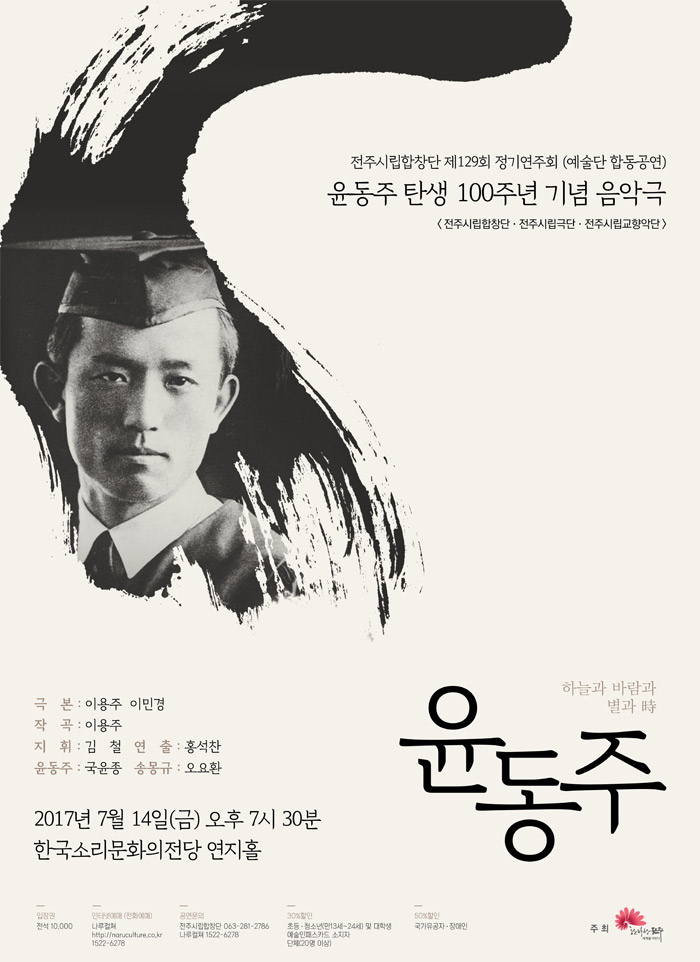 애절한 감동이 있는 음악극 하늘과 바람과 별과 時‘윤동주’가 전주시민의 가슴속에 큰 감동을 선사 할 것이다.