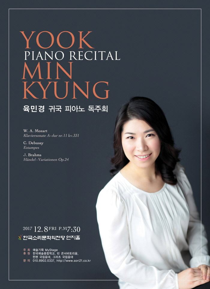 따뜻한 음색과 설득력 있는 해석으로 청중과 소통하는 피아니스트 육민경은 전주예술고등학교를 실기 수석으로 졸업하였으며 예고 재학 중 한국예술종합학교 예비학교를 수료하였다. 이후, 한국예술종합학교 음악원에 진학하여 전 학기를 장학생으로 공부하였다.