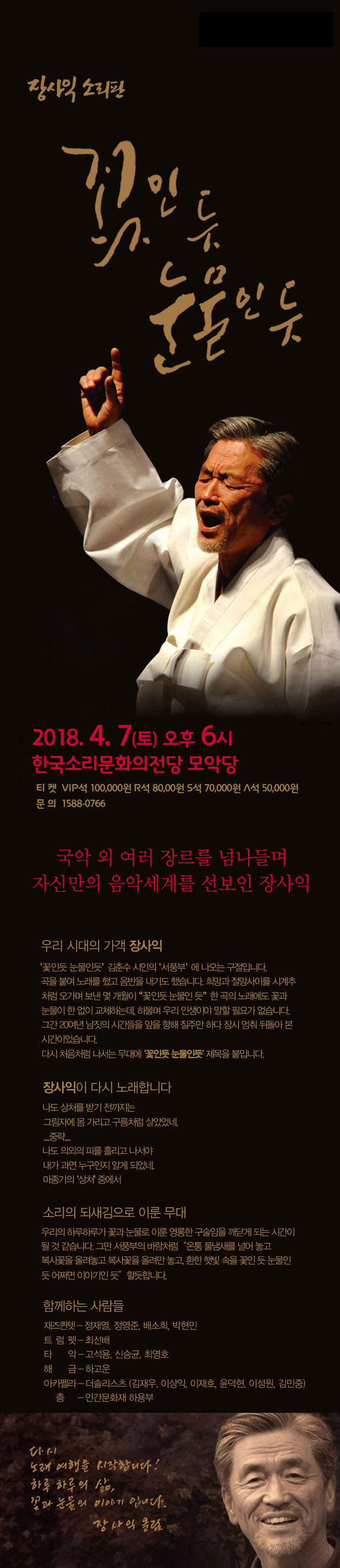 2018 장사익 소리판 ‘꽃인듯 눈물인듯’