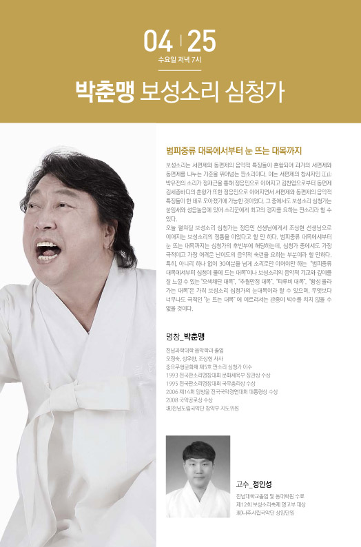 4월 25일(수)7시 보성소리 심청가 박춘맹 고수_정인성