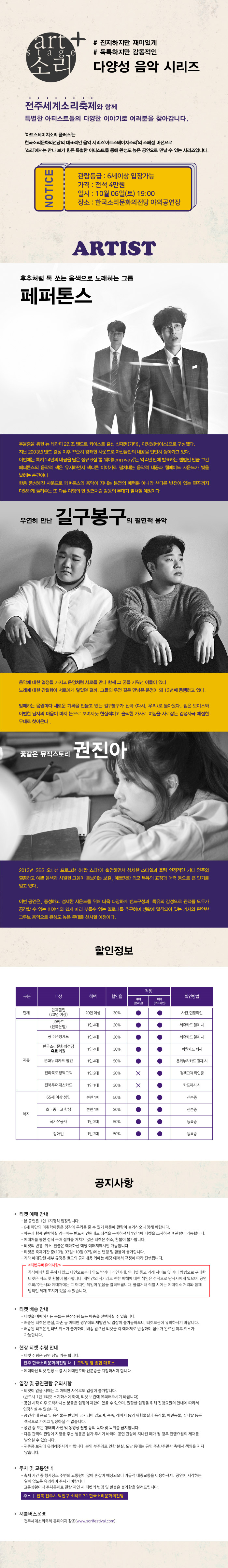 | [기획] 아트스테이지소리 플러스-페퍼톤스, 길구봉구, 권진아 |
