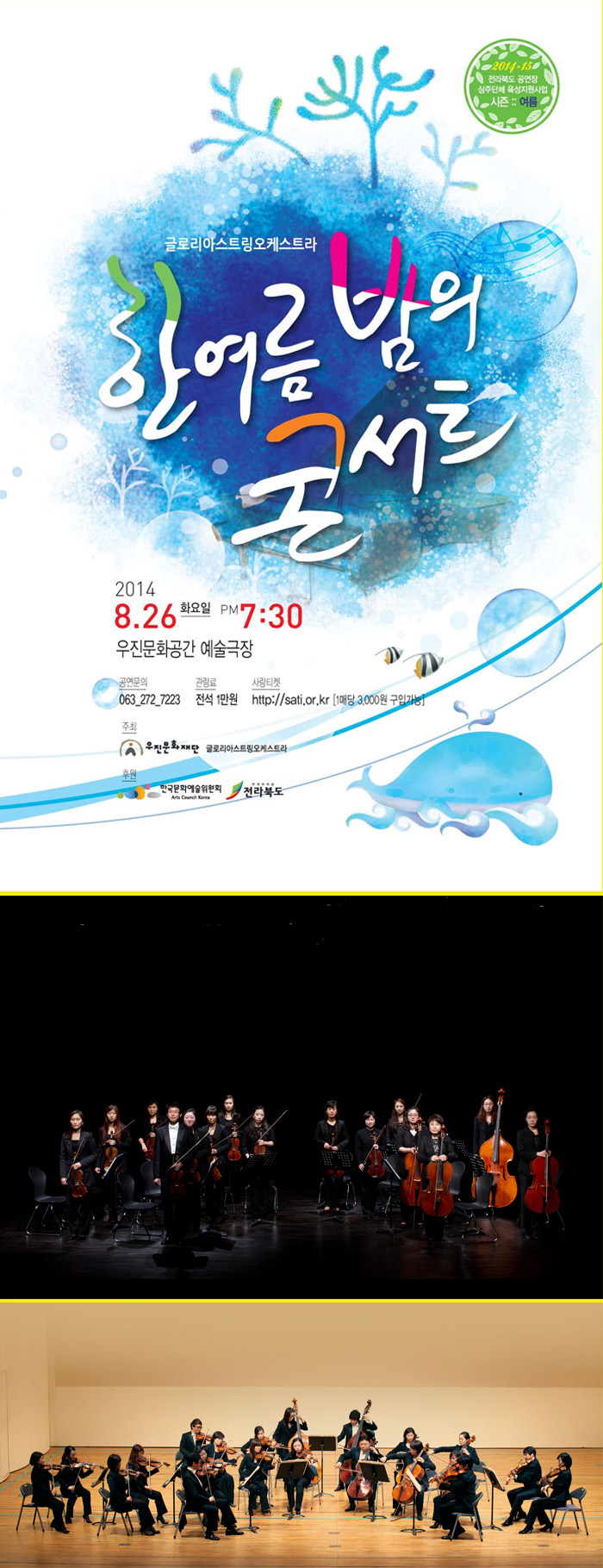 이 공연은 전라북도에서 가장 오랜 연혁과 뛰어난 실력을 자랑하는 현악합주단 글로리아스트링오케스트라(리더 최영호)가 전라북도 공연장 상주단체육성지원사업의 지원을 받아 준비됐습니다.