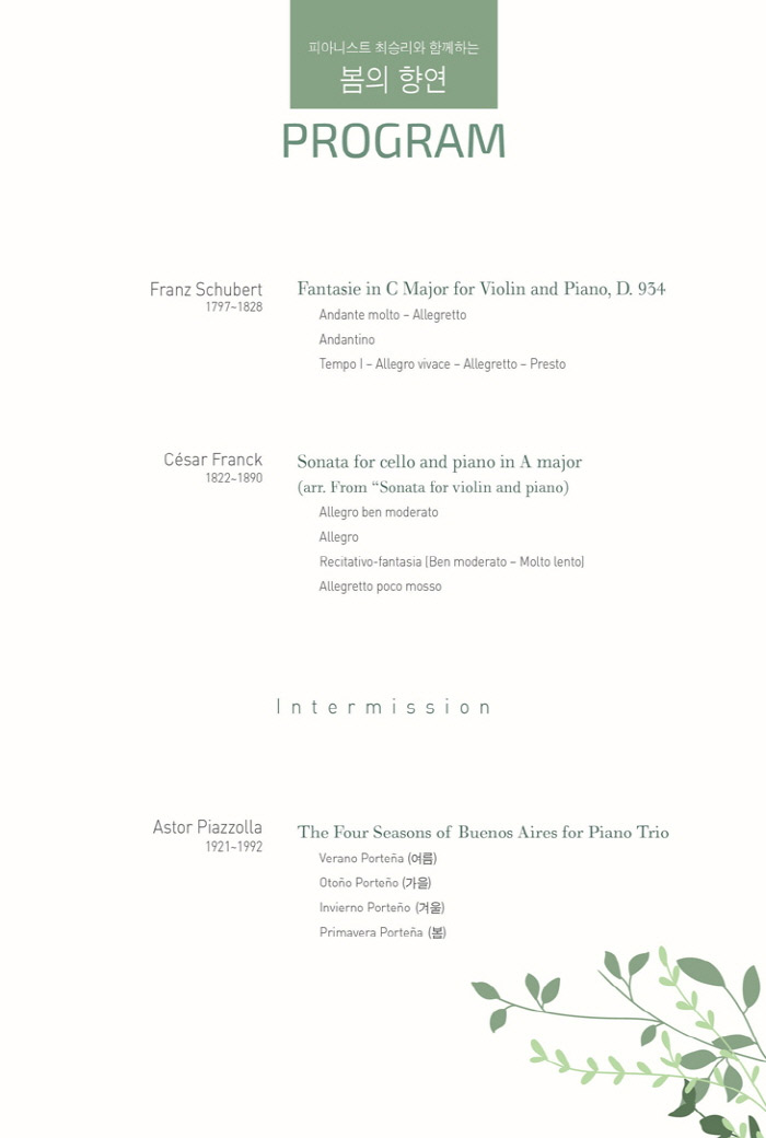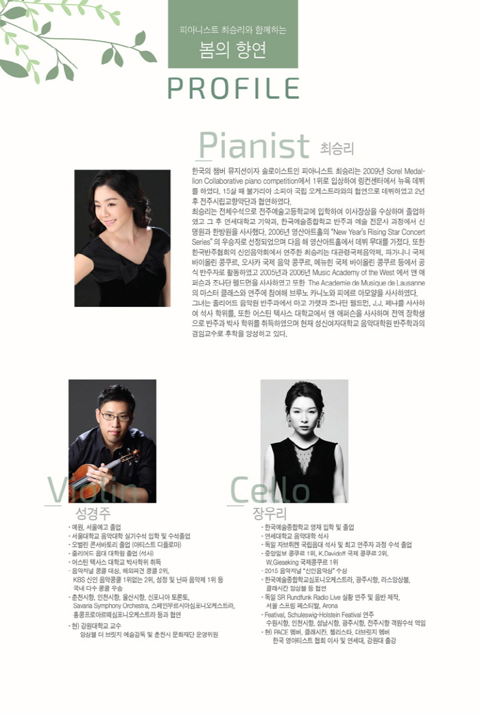 피아니스트 최승리와 함께하는 봄의 향연 '식목일에 함께하는 음악회'