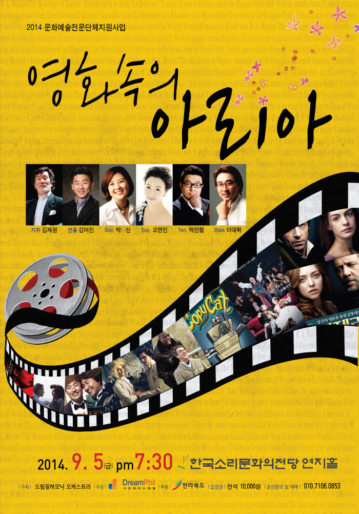 매년 여러 가지 기획 연주회로 도민들의 많은 사랑을 받고 있는 사) 드림필이 2014년 기획연주인 영화속의 아리아로 도민들을 찾아갈 계획이다.일반 도민들이 영화를 통해 쉽게 접했던 오페라속 아리아를 50여명의 오케스트라와 정상급 성악가들로 연주할 계획이다. 성악가, 오케스트라가 함께하는 수준높은 예술 관람 제공을 통해 문화향유 능력 계발 및 중장기적인 문화예술 수요 기반 확대를 목적으로한다.