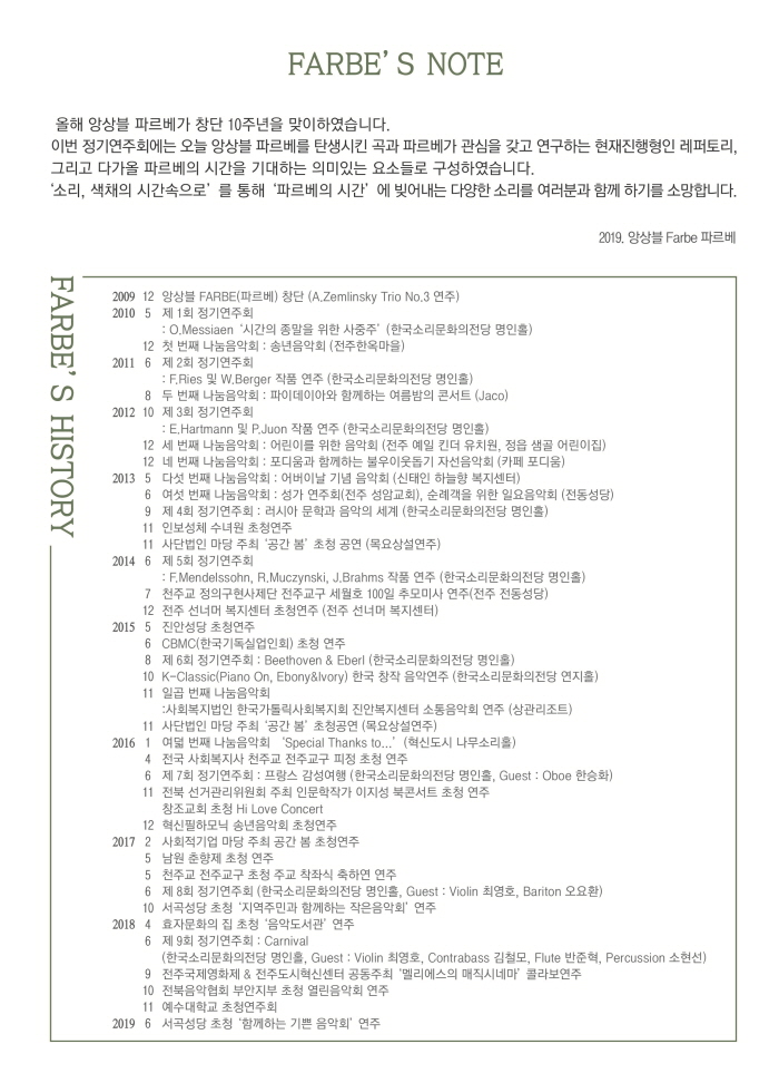 앙상블 파르베 10주년 기념음악회'과거 우리 그리고 미래'