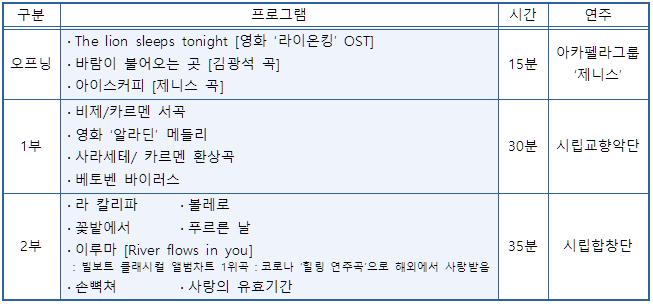 코로나 19로 인한 시민들의 무기력과 우울 정서적 해소 - 클래식 및 시민에게 힘을 줄 수 있는 ‘익숙한 컨텐츠’ 선정