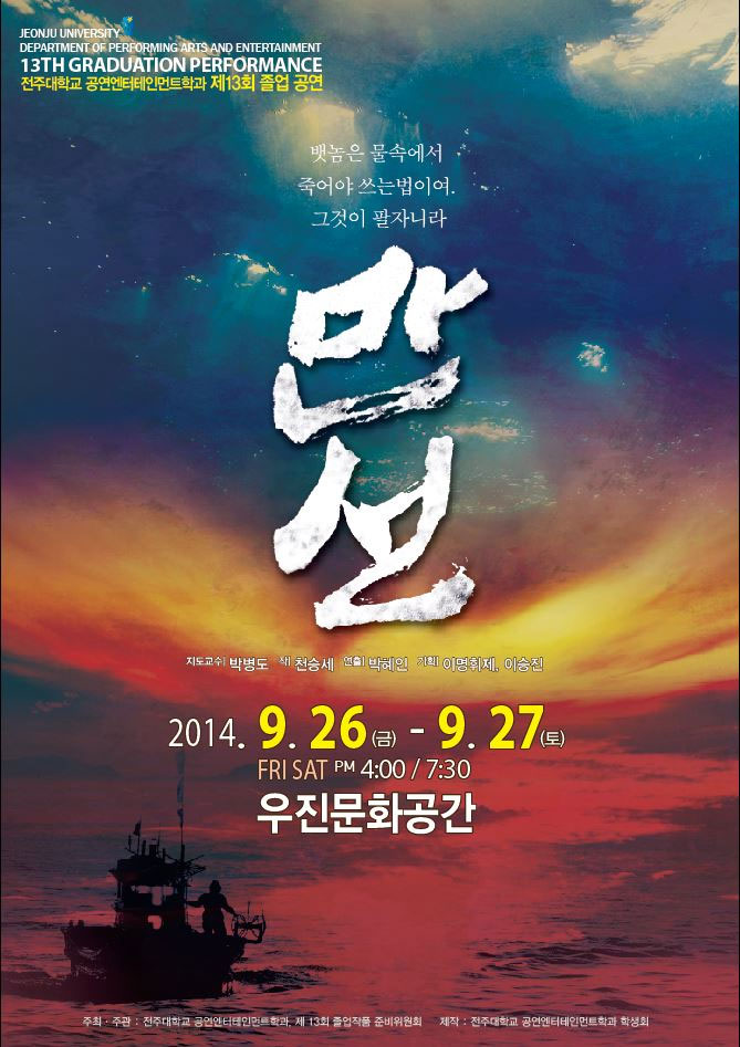 전주대학교(총장 이호인) 문화산업대학 공연엔터테인먼트학과가 26일(금)과 27일(토) 이틀간 오후 3시와 7시(총 4회 공연) 전주 우진 문화공간 예술극장에서 제13회 졸업공연 ‘만선’을 올린다.
