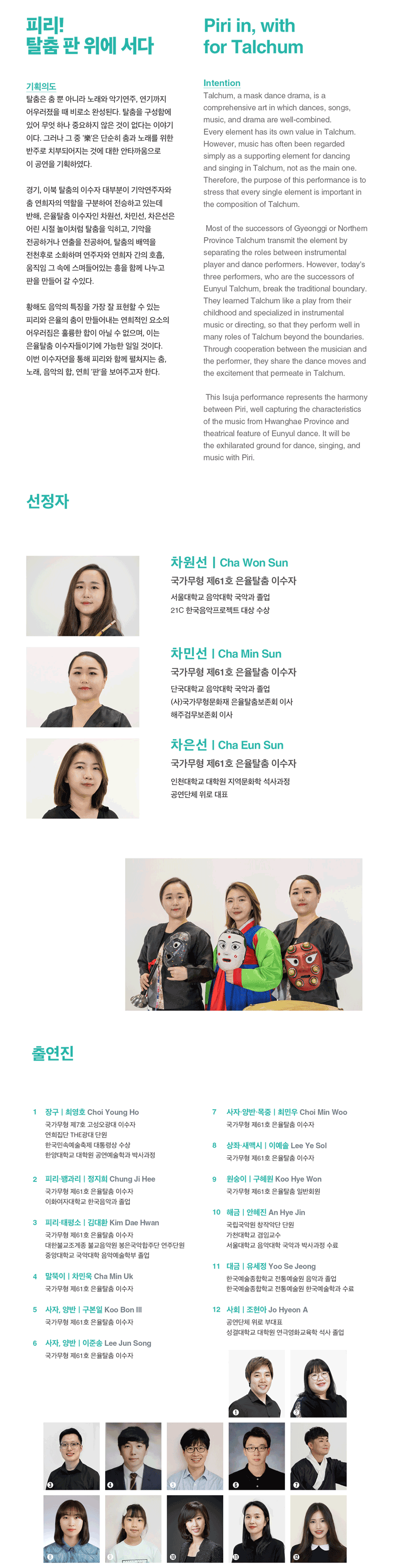 국립무형유산원은 관객 여러분들의 안전한 관람을 위해 최선을 다하겠습니다.