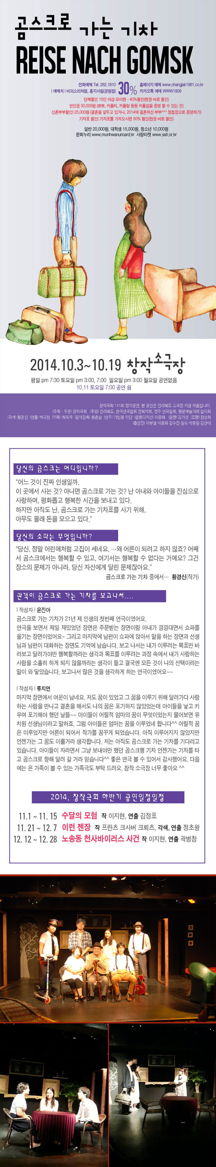 일시: 2014. 10. 3(금)~10. 19(일) 평일 7시 30분, 토요일 3시 7시, 일요일 3시.