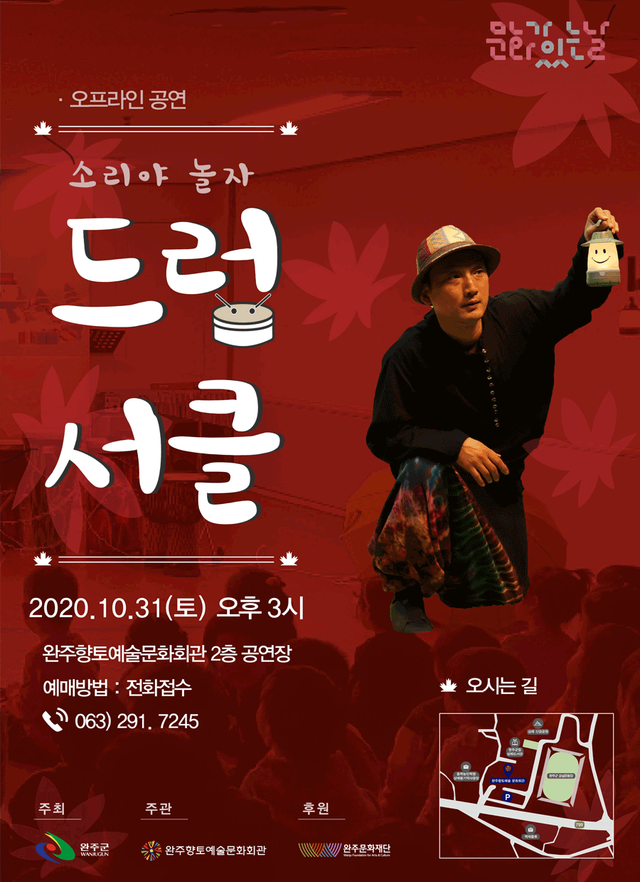 전 세계 다양한 소리를 찾아 여행하여 음악을 만들어나가는 체험 음악극 접수방법 : 전화접수 선착순 접수 : 10가족 문의 : 063-291-7245 접수기간 : 2020년 10월 22일 ~ 2020년 10월 30일