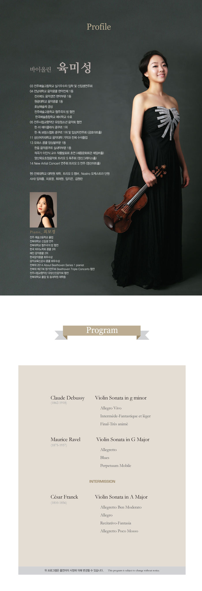 | 한국소리문화의전당 독주회시리즈-육미성 바이올린 독주회 |