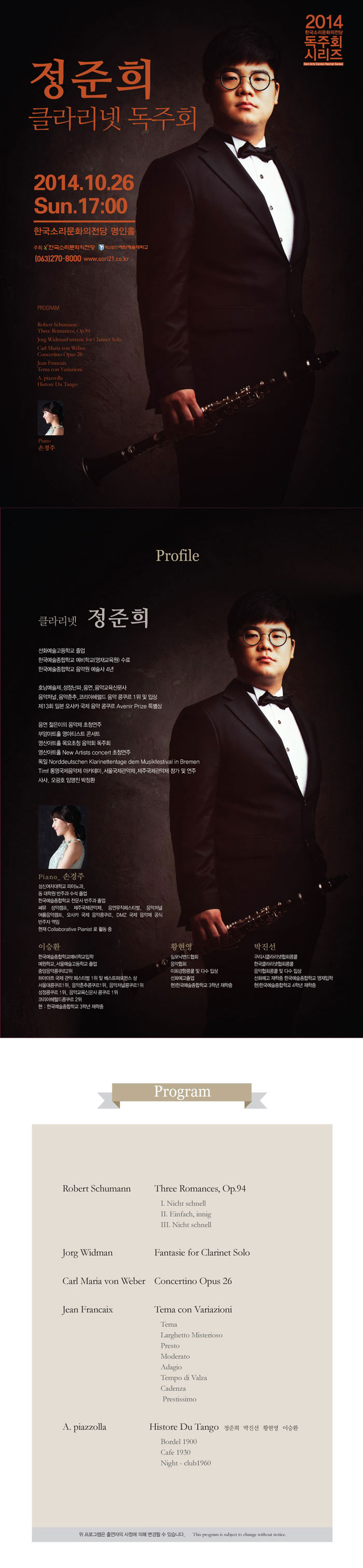 | 한국소리문화의전당 독주회시리즈-정준희 클라리넷 독주회 |