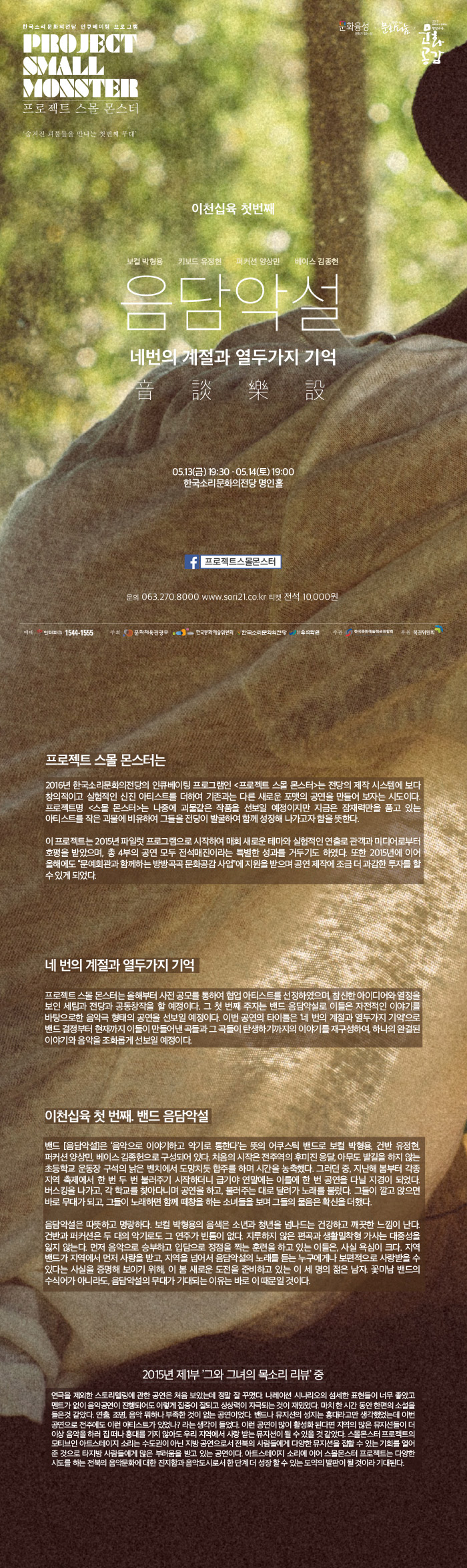 문화체육관광부, 한국문화예술위원회, 한국소리문화의전당 학교법인 우석학원 / 문화체육관광부, 한국문화예술위원회, 한국소리문화의전당 학교법인 우석학원 |
