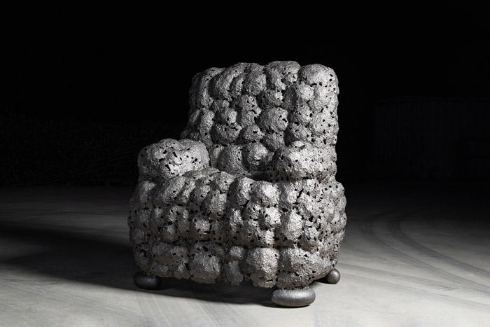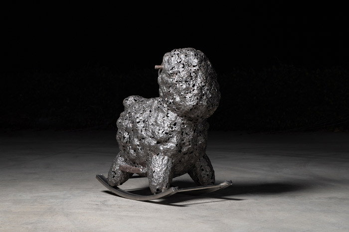 특히 엄지손톱크기의 너트를 활용하여 형태를 만들고 용접 물로 속을 채워 쌓아가는 기법(정말이지 꽤나 긴 시간과 노동력을 필요로 한 지난한 과정일 것으로 추측된다)에서 드러난 투박하나 원시적인 생명력, 정적이지만 느낌만은 유동적인 조형요소들은 특유의 따뜻함과 편안한 미을 선사한다. 이는 작가의 독특한 조형적 탐구가 적용되고 있음을 읽게 하며, 삶에 있어 고운 결을 갖고 싶다는 작가의 작화적 의도를 발견하게 하는 요소이다.