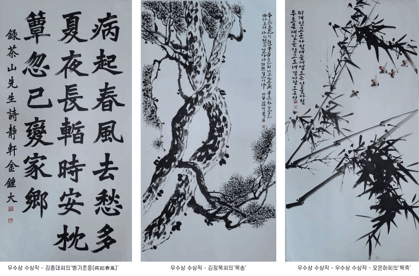표현한 작품으로 평가됐다. 또한 문인화 부문의 우수상을 차지한 김정묵 씨의 작품 ‘묵송(墨松)’은 두 그루의 소나무를