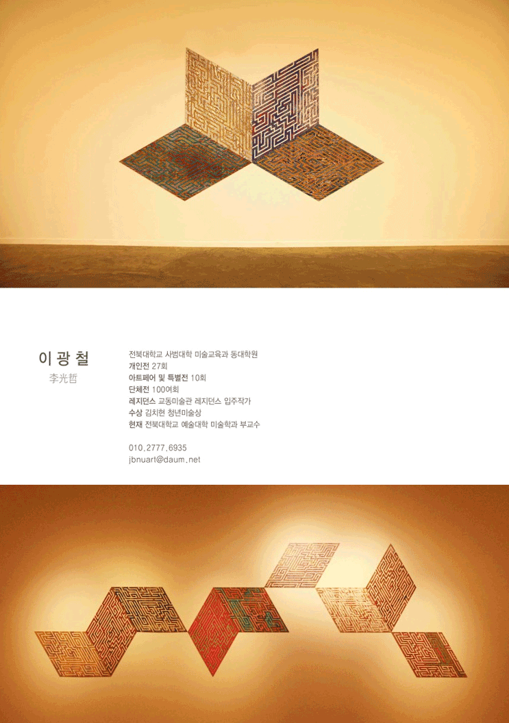 차분한 분위기속에 교수님의 예술혼이 깃든 작품세계를 감상하시는 여유로움과 진한 감동의 시간 가져보시길 희망합니다.