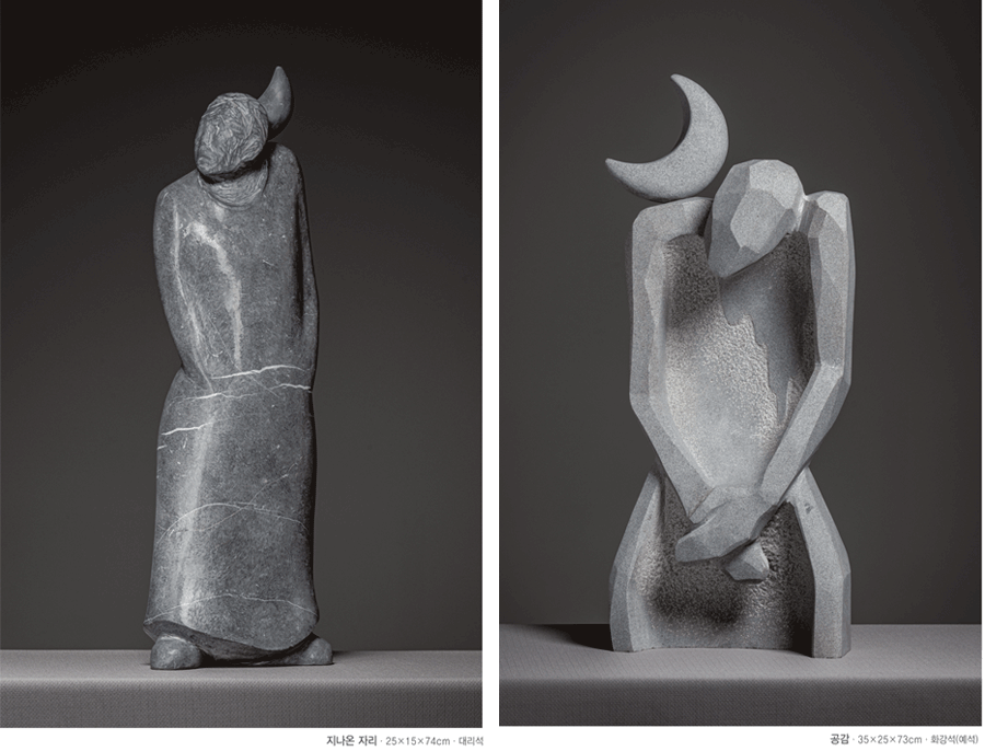 깍고 다듬고 수많은 손질을 하는 인고의 시간을 지나 최소한의 형태를 지닌 여리지만 묵직한 마음 한덩이가 세상에 던져진다.