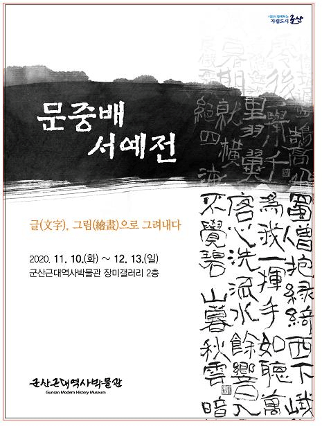 붓글씨의 소재인 문자를 언어를 기록하는 시각적인 기호체계로 인식하기보다는, 그림의 이미지로 표현해내려는 의도로 작품활동을 해온 군산시민작가 문중배의 두번째 개인전으로, 순수 한시와 명언명구 등을 기존의 서예작품들과는 다른 회화적인 느낌을 담아 표현한 서예실험작품 30점을 공개.