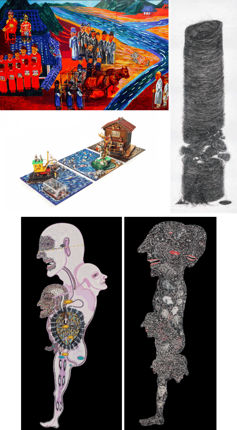 자신만의 시각 언어로 역사화를 이어 온 서용선도 기존과 다른 방식으로 시도, 대문자 역사에서 소문자 역사의 시각의 작품들을 설치 작품과