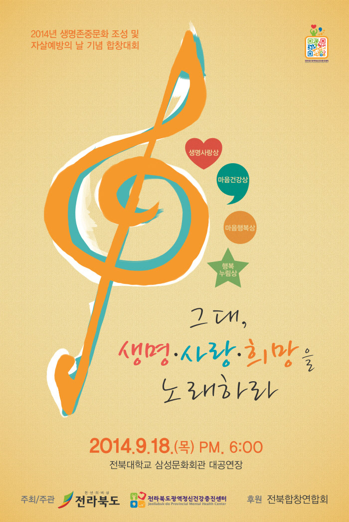 본 대회는 전라북도와 전라북도광역정신건강증진센터에서 주최, 주관하는 행사이며 생명, 사랑, 희망을 주제로 합니다.