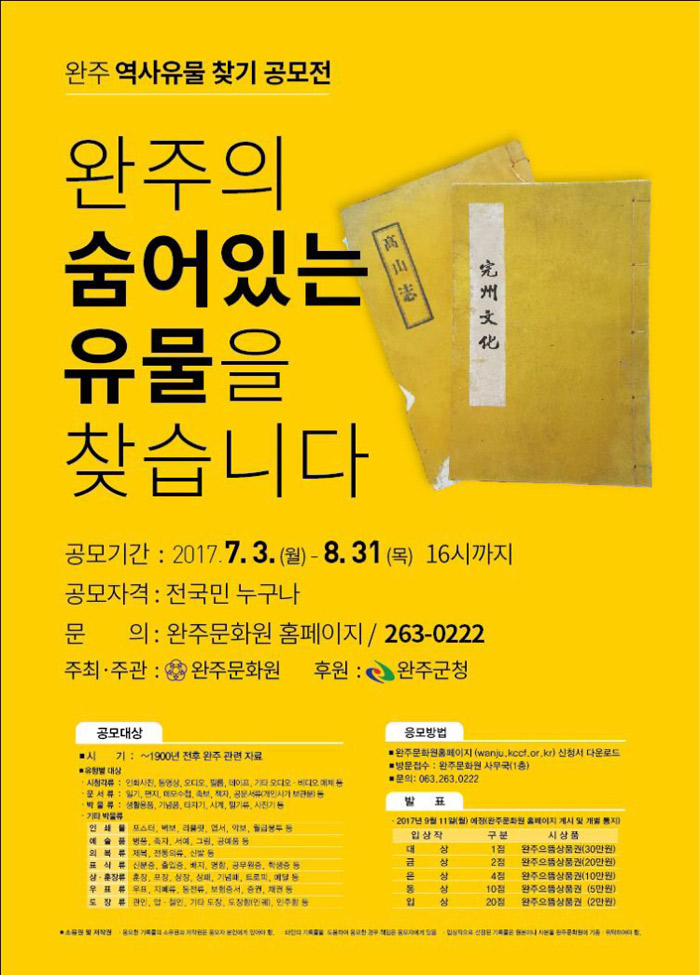 1. 완주군은 전통문화가 산재한 군으로 역사자료와 근현대유물이 많이 산재되어 있음.