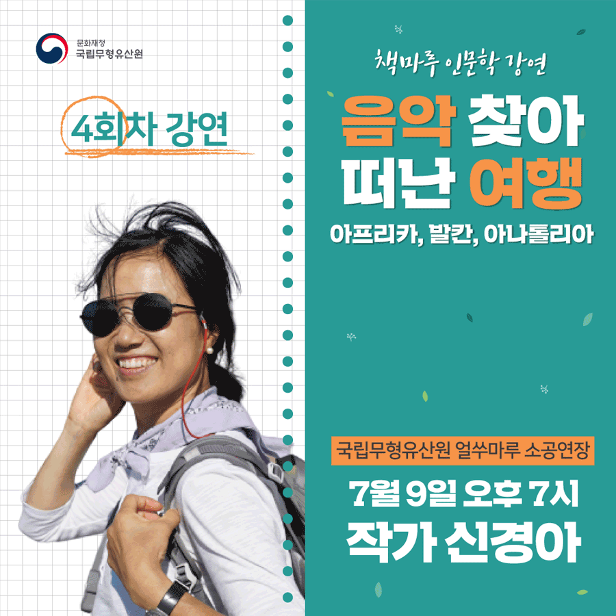신경아 작가님과 함께 세계의 음악 속으로 빠져보고 싶다면, 7월 9일 목요일 7시,