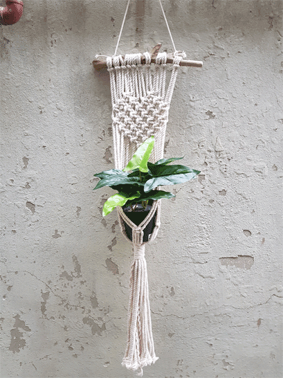 마크라메는 다른 도구 없이 오로지 손을 이용하여 끈으로 매듭을 엮어 작품을 만들 수 있다.