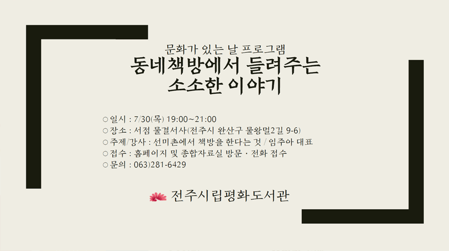 강연 참여시 유의사항 - 마스크 착용 필수 - 사전신청 하신 분들만 참여가능(좌석이 제한되어 있으니 양해 바랍니다.) - 입구에서 손소독제 사용 후 입장 - 강의 당일 몸이 안 좋거나, 기침, 열이 나시는 분들은 신청하셨더라도 참여하지 말아주세요. - 물/차는 생수나 개인컵을 가져와 주시기 바랍니다.