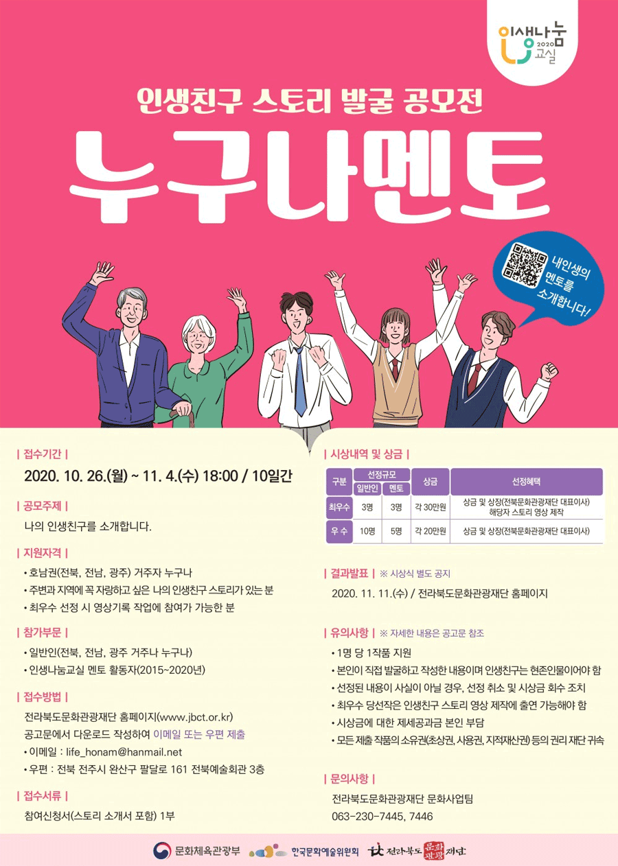 문화체육관광부가 주최하고 한국문화예술위원회와 전라북도문화관광재단이 주관하는 「2020 인생나눔교실」 호남권은