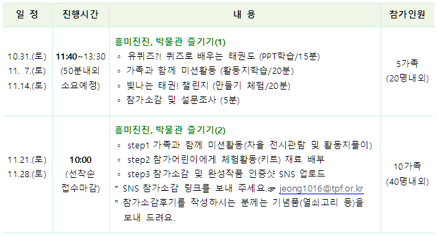 참가를 원하는 초등학생 동반 가족 관람객은 당일 오전10시부터 현장접수로 신청할 수 있습니다.