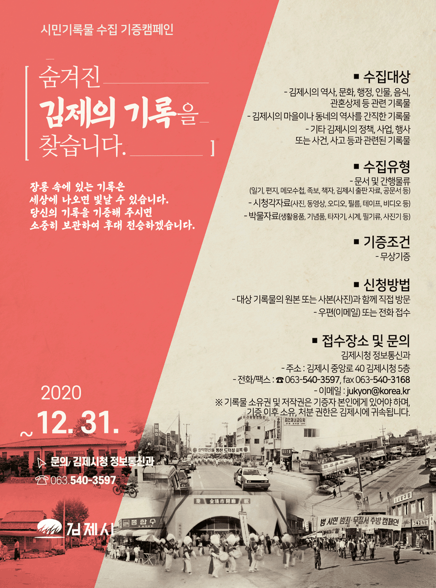 숨겨진 김제의 기록을 찾습니다. 시민기록물 기증캠페인