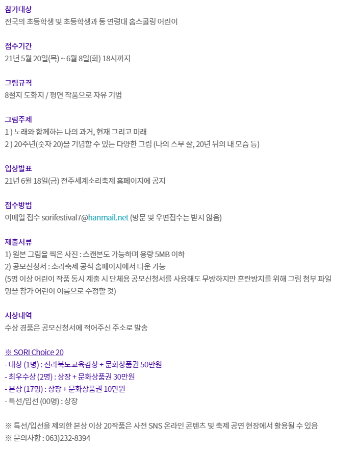 온라인 어린이 그림 공모 ‘소리 초이스 20’